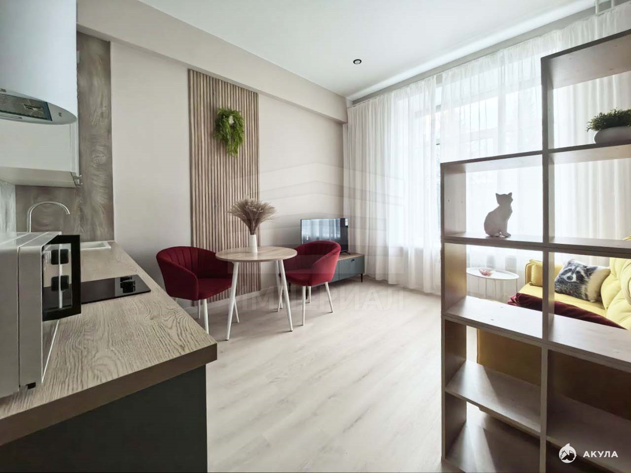 Студия с мебелью и техникой.