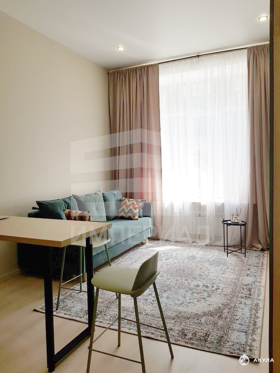 Студия с мебелью и техникой.