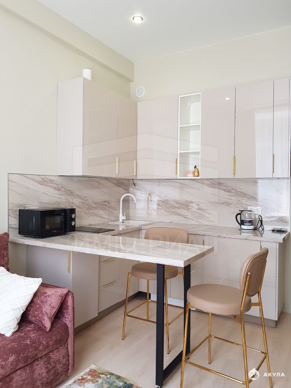 Студия с мебелью и техникой.