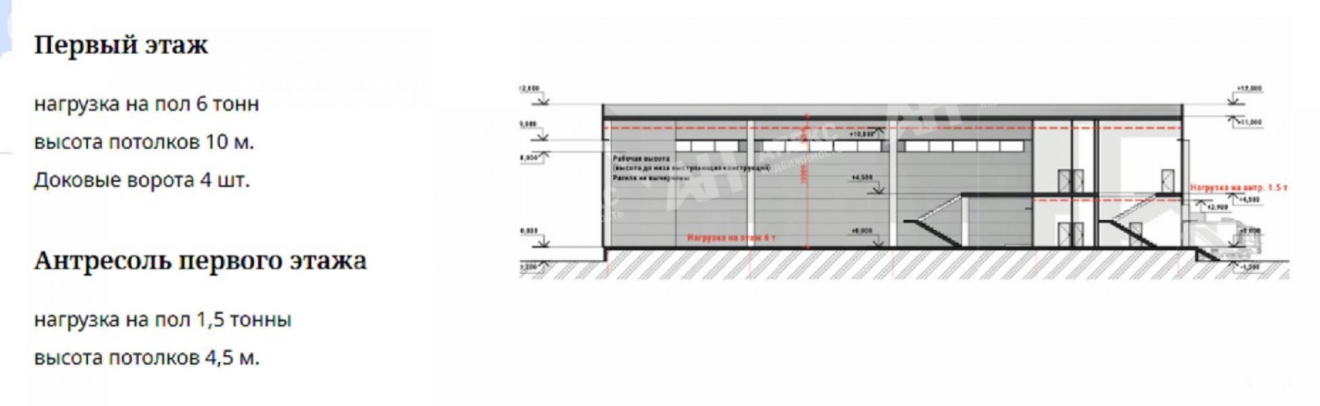 Технические характеристики: 4 доковых узла: 2 — для фур, 2 — для малотоннажных и легковых авто. Высота потолков: 10 метров + антресоль 4, 5 м. Сетка колон 12x12. Нагрузка: 6 тонн/м², в зоне мезонина: 1, 5 т/м². Выделенная мощность: 25 кВт в каждом блоке (возможно увеличение, выделенная мощность на индустриальный парк 4, 2 мВт). Собственная котельная мощностью 19 МВт/час, магистральный газ с ежегодным лимитом 9 млн. тонн условного топлива, все центральные коммуникации. Объект обеспечен всеми необходимыми инженерными системами, включая современную систему автоматического пожаротушения, центральное отопление, водоснабжение и канализацию.