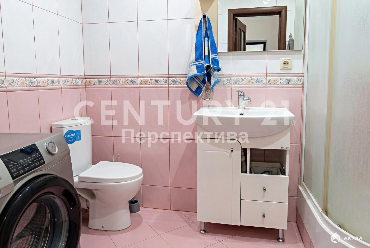 -Санузел в кафеле, установлена качественная сантехника.