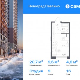 Строим кварталы для жизни с заботой о будущем. Предлагается квартира студия комфорт-класса 20, 7 кв.м в корпусе 9 на 16 этаже, в ЖК «Новоград Павлино» Квартира с чистовой отделкой. Доступность дополнительных опций уточняйте у застройщика. Приобрести квартиру возможно по...