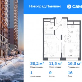 Строим кварталы для жизни с заботой о будущем. Предлагается 1-комнатная квартира комфорт-класса 36, 2 кв.м в корпусе 9 на 16 этаже, в ЖК «Новоград Павлино» Квартира с чистовой отделкой. Доступность дополнительных опций уточняйте у застройщика. Приобрести квартиру возможно по...