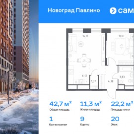 Строим кварталы для жизни с заботой о будущем. Предлагается 1-комнатная квартира комфорт-класса 42, 4 кв.м в корпусе 6 на 22 этаже, в ЖК «Новоград Павлино» Квартира с предчистовой отделкой. Доступность дополнительных опций уточняйте у застройщика. Приобрести квартиру...