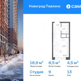 Строим кварталы для жизни с заботой о будущем. Предлагается квартира студия комфорт-класса 18, 9 кв.м в корпусе 9 на 13 этаже, в ЖК «Новоград Павлино» Квартира с чистовой отделкой. Доступность дополнительных опций уточняйте у застройщика. Приобрести квартиру возможно по...