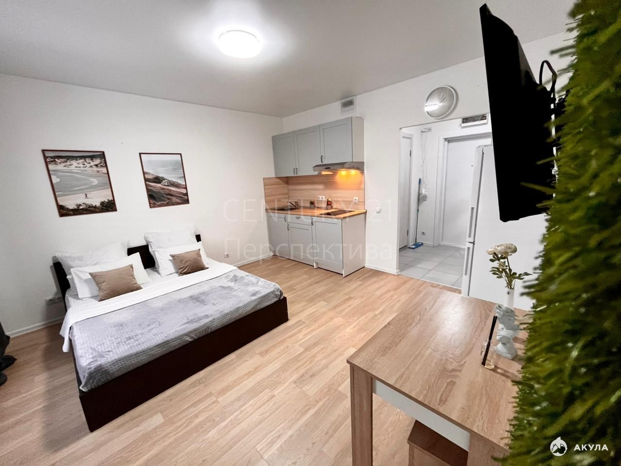 Студия укомплектована :Кухня IKEA, шкаф в коридоре, холодильник, стиральная машинка - всё остается.