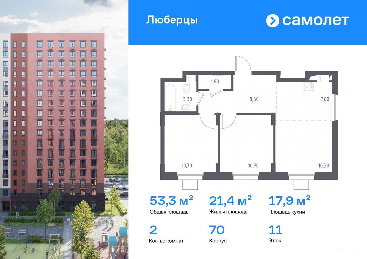 Строим кварталы для жизни с заботой о будущем. Предлагаются 2-комнатные апартаменты комфорт-класса 53, 3 кв.м в корпусе 70 на 11 этаже, в «Люберцы»