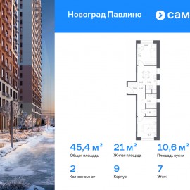 Строим кварталы для жизни с заботой о будущем. Предлагается 2-комнатная квартира комфорт-класса 45, 4 кв.м в корпусе 9 на 7 этаже, в ЖК «Новоград Павлино» Квартира с чистовой отделкой. Доступность дополнительных опций уточняйте у застройщика. Приобрести квартиру возможно по...