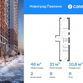 Строим кварталы для жизни с заботой о будущем. Предлагается 2-комнатная квартира комфорт-класса 46 кв.м в корпусе 9 на 8 этаже, в ЖК «Новоград Павлино» Квартира с чистовой отделкой. Доступность дополнительных опций уточняйте у застройщика. Приобрести квартиру возможно по...