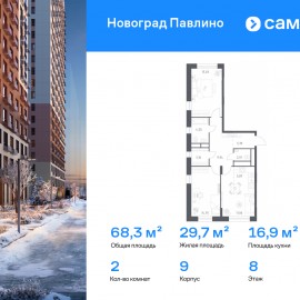 Строим кварталы для жизни с заботой о будущем. Предлагается 2-комнатная квартира комфорт-класса 68, 6 кв.м в корпусе 9 на 22 этаже, в ЖК «Новоград Павлино» Квартира с предчистовой отделкой. Доступность дополнительных опций уточняйте у застройщика. Приобрести квартиру...