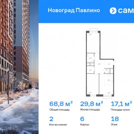 Строим кварталы для жизни с заботой о будущем. Предлагается 2-комнатная квартира комфорт-класса 68, 8 кв.м в корпусе 6 на 18 этаже, в ЖК «Новоград Павлино» Квартира с предчистовой отделкой. Доступность дополнительных опций уточняйте у застройщика. Приобрести квартиру...