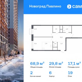 Строим кварталы для жизни с заботой о будущем. Предлагается 2-комнатная квартира комфорт-класса 68, 9 кв.м в корпусе 6 на 19 этаже, в ЖК «Новоград Павлино» Квартира с предчистовой отделкой. Доступность дополнительных опций уточняйте у застройщика. Приобрести квартиру...