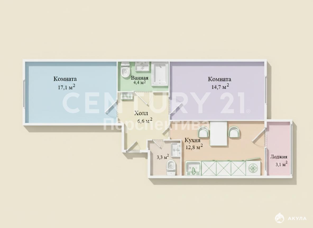 Просторная, уютная квартира на видовом этаже в ЖК " Самолет" ! <br><br>-Уютная кухня с кухонным гарнитуром и техникой .