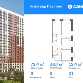 Строим кварталы для жизни с заботой о будущем. Предлагается 3-комнатная квартира комфорт-класса 71, 8 кв.м в корпусе 6 на 21 этаже, в ЖК «Новоград Павлино» Квартира с предчистовой отделкой. Доступность дополнительных опций уточняйте у застройщика. Приобрести квартиру...
