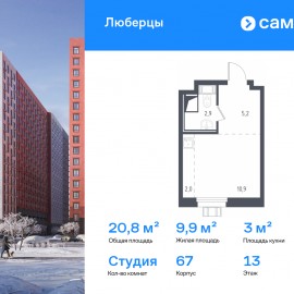 Строим кварталы для жизни с заботой о будущем. Предлагаются апартаменты студия комфорт-класса 20, 8 кв.м в корпусе 67 на 13 этаже, в «Люберцы» Апартаменты с чистовой отделкой. Доступность дополнительных опций уточняйте у застройщика. Прописка не предусмотрена в рамках...