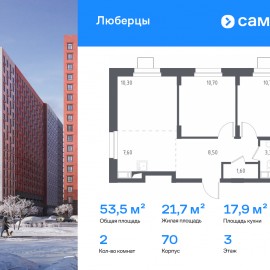 Строим кварталы для жизни с заботой о будущем. Предлагаются 2-комнатные апартаменты комфорт-класса 53, 5 кв.м в корпусе 70 на 3 этаже, в «Люберцы» Апартаменты с чистовой отделкой. Доступность дополнительных опций уточняйте у застройщика. Прописка не предусмотрена в рамках...