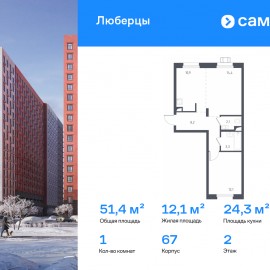 Строим кварталы для жизни с заботой о будущем. Предлагаются 1-комнатные апартаменты комфорт-класса 51, 4 кв.м в корпусе 67 на 2 этаже, в «Люберцы» Апартаменты с чистовой отделкой. Доступность дополнительных опций уточняйте у застройщика. Прописка не предусмотрена в рамках...