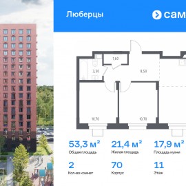 Строим кварталы для жизни с заботой о будущем. Предлагаются 2-комнатные апартаменты комфорт-класса 53, 3 кв.м в корпусе 70 на 11 этаже, в «Люберцы» Апартаменты с чистовой отделкой. Доступность дополнительных опций уточняйте у застройщика. Прописка не предусмотрена в рамках...