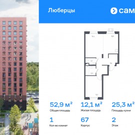 Строим кварталы для жизни с заботой о будущем. Предлагаются 1-комнатные апартаменты комфорт-класса 52, 9 кв.м в корпусе 67 на 2 этаже, в «Люберцы» Апартаменты с чистовой отделкой. Доступность дополнительных опций уточняйте у застройщика. Прописка не предусмотрена в рамках...