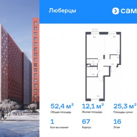 Строим кварталы для жизни с заботой о будущем. Предлагаются 1-комнатные апартаменты комфорт-класса 52, 4 кв.м в корпусе 67 на 16 этаже, в «Люберцы» Апартаменты с чистовой отделкой. Доступность дополнительных опций уточняйте у застройщика. Прописка не предусмотрена в рамках...