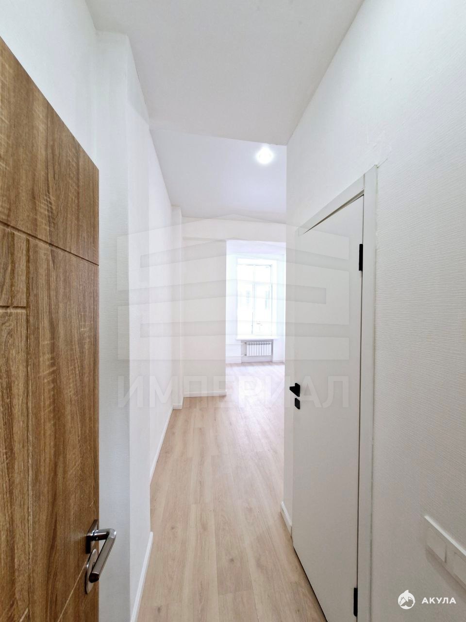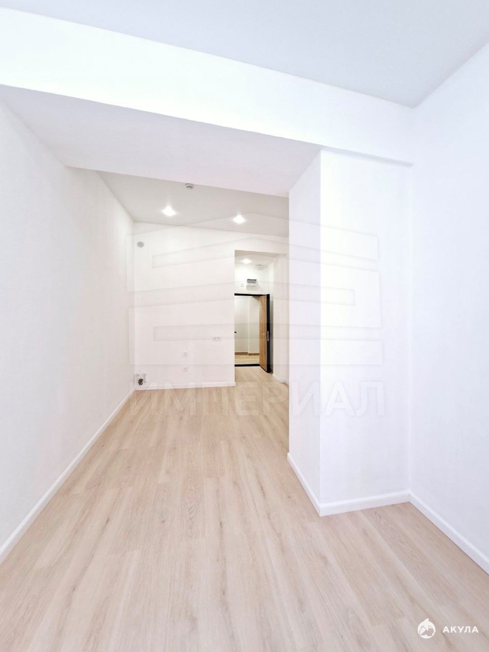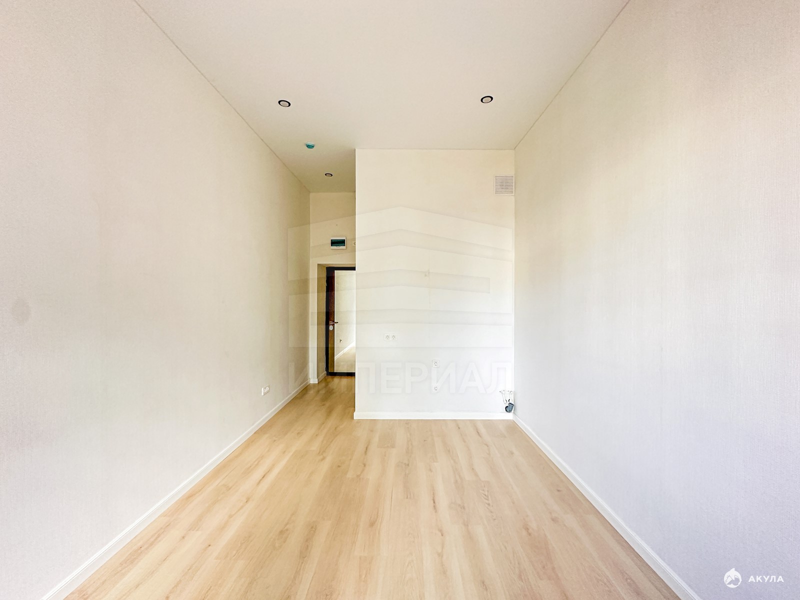 На стенах поклеены обои под покраску, на полу постелен ламинат с плинтусами и откосами. Есть вытяжная вентиляция в санузле и на кухне, выходы хв/гв, место под раковину на кухне. Кроме того, в помещениях уже есть выключатели освещения, розетки для бытовой техники и роутера, а также сделаны закладные для оптоволокна для интернета.