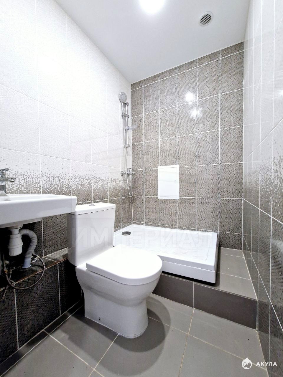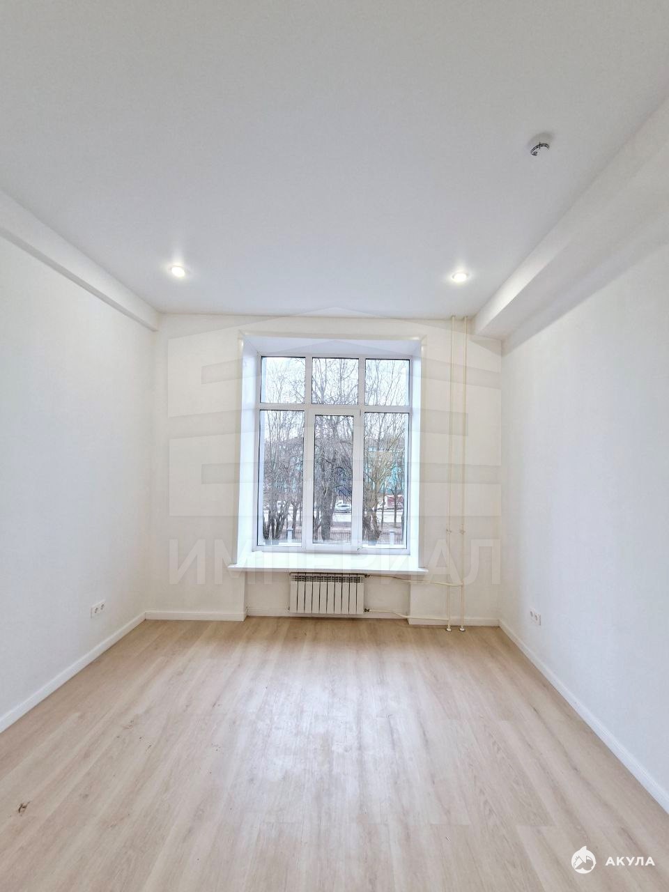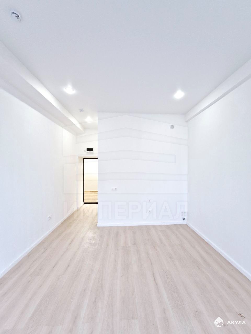 На стенах поклеены обои под покраску, на полу постелен ламинат с плинтусами и откосами. Есть вытяжная вентиляция в санузле и на кухне, выходы хв/гв, место под раковину на кухне. Кроме того, в помещениях уже есть выключатели освещения, розетки для бытовой техники и роутера, а также сделаны закладные для оптоволокна для интернета.