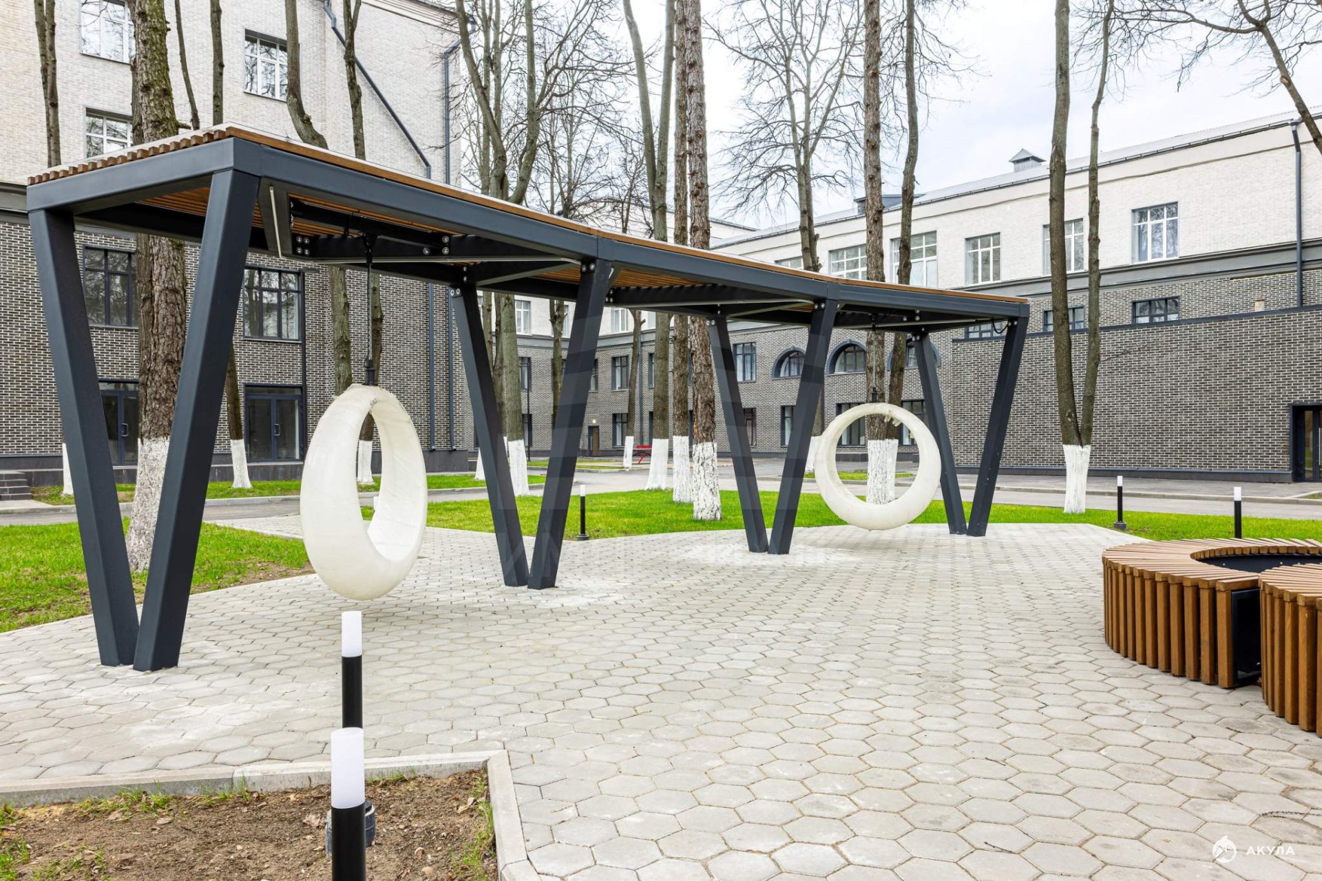 В кирпичном здании после полной реновации воссоздана атмосфера старинной усадьбы. На огороженной территории находится красивый парк с высокими вечнозелеными деревьями. Здесь оборудованы зоны отдыха и детская площадка, где вы и ваши гости сможете комфортно проводить время. Также есть парковка, а внутри здания предусмотрено место для хранения колясок и детского транспорта.