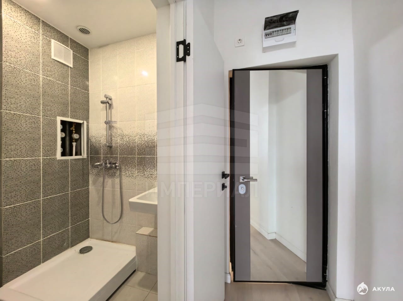 Здесь установлены новые надежные коммуникации и железобетонные перекрытия. В студии выполнена евроотделка, что избавит вас от лишних за от с обустройством помещения. Тут уже есть качественная металлическая дверь c внешней вставкой и зеркальной панелью, натяжные потолки, радиаторы. Санузел отделан под ключ, внутри есть унитаз, раковина, смеситель, поддон для душевой кабины и душевой гарнитур.