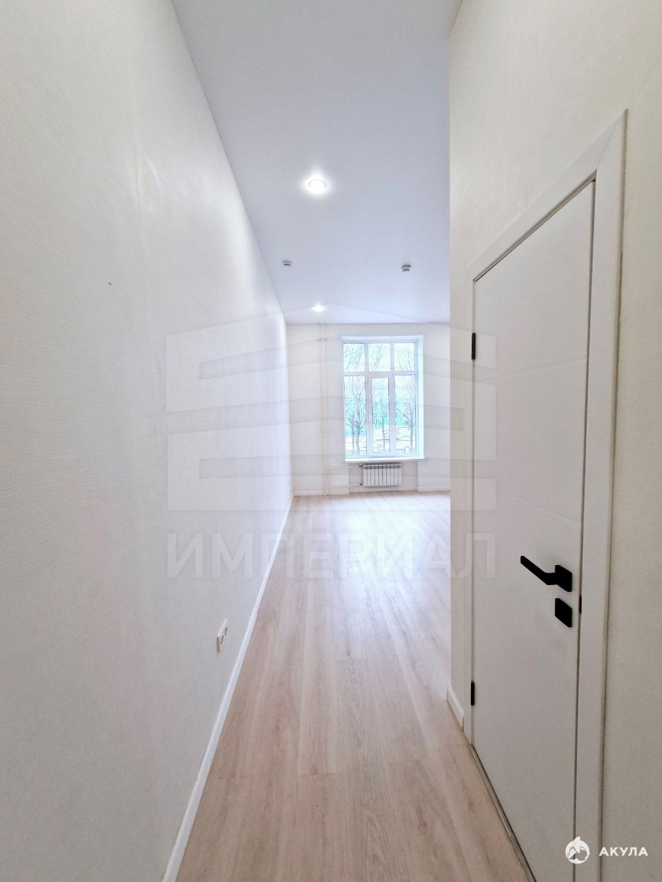На стенах поклеены обои под покраску, на полу постелен ламинат с плинтусами и откосами. Есть вытяжная вентиляция в санузле и на кухне, выходы хв/гв, место под раковину на кухне. Кроме того, в помещениях уже есть выключатели освещения, розетки для бытовой техники и роутера, а также сделаны закладные для оптоволокна для интернета.