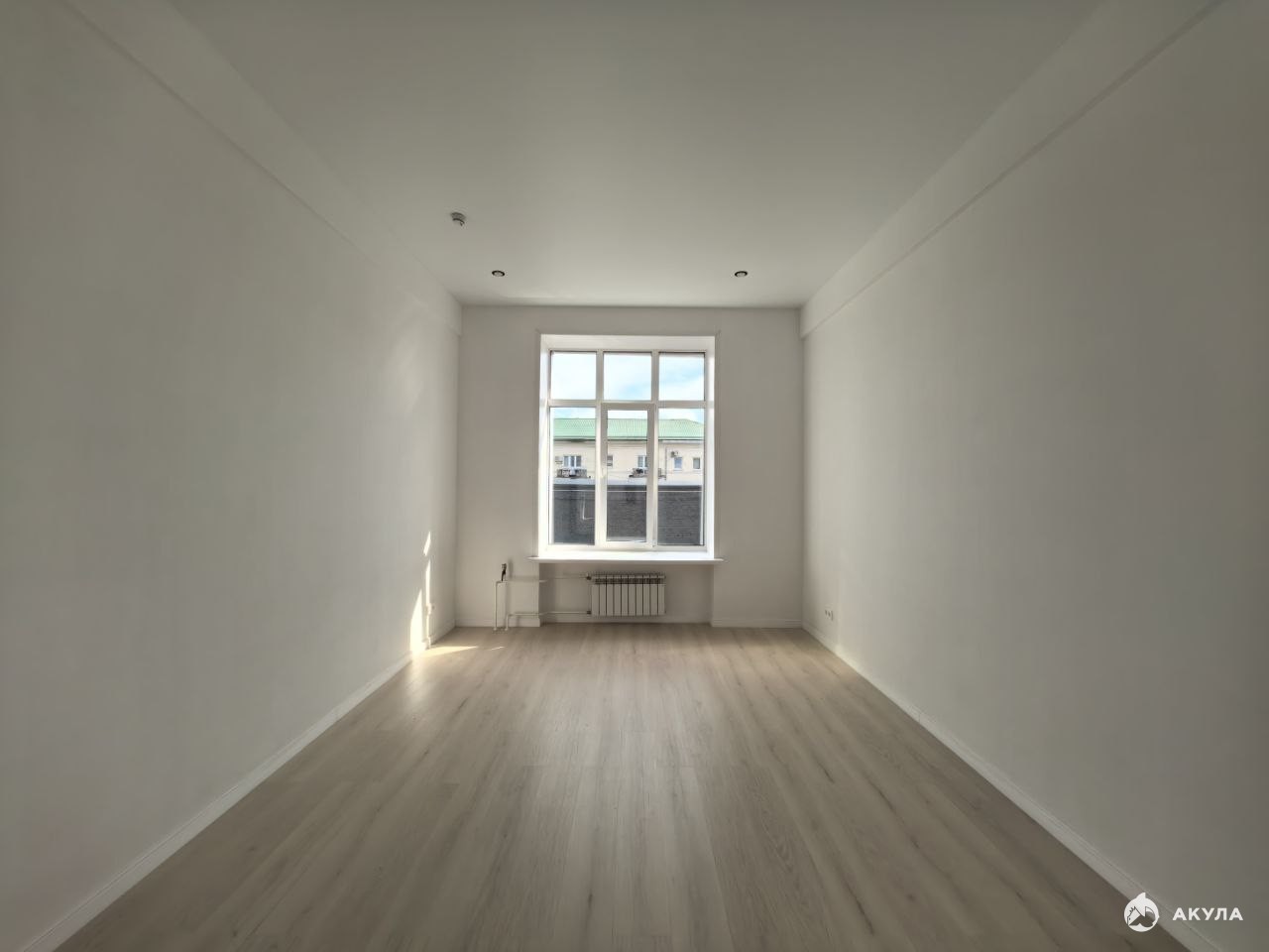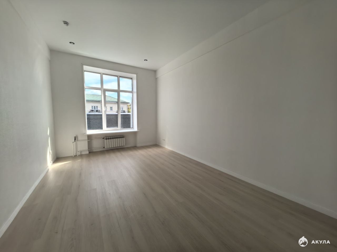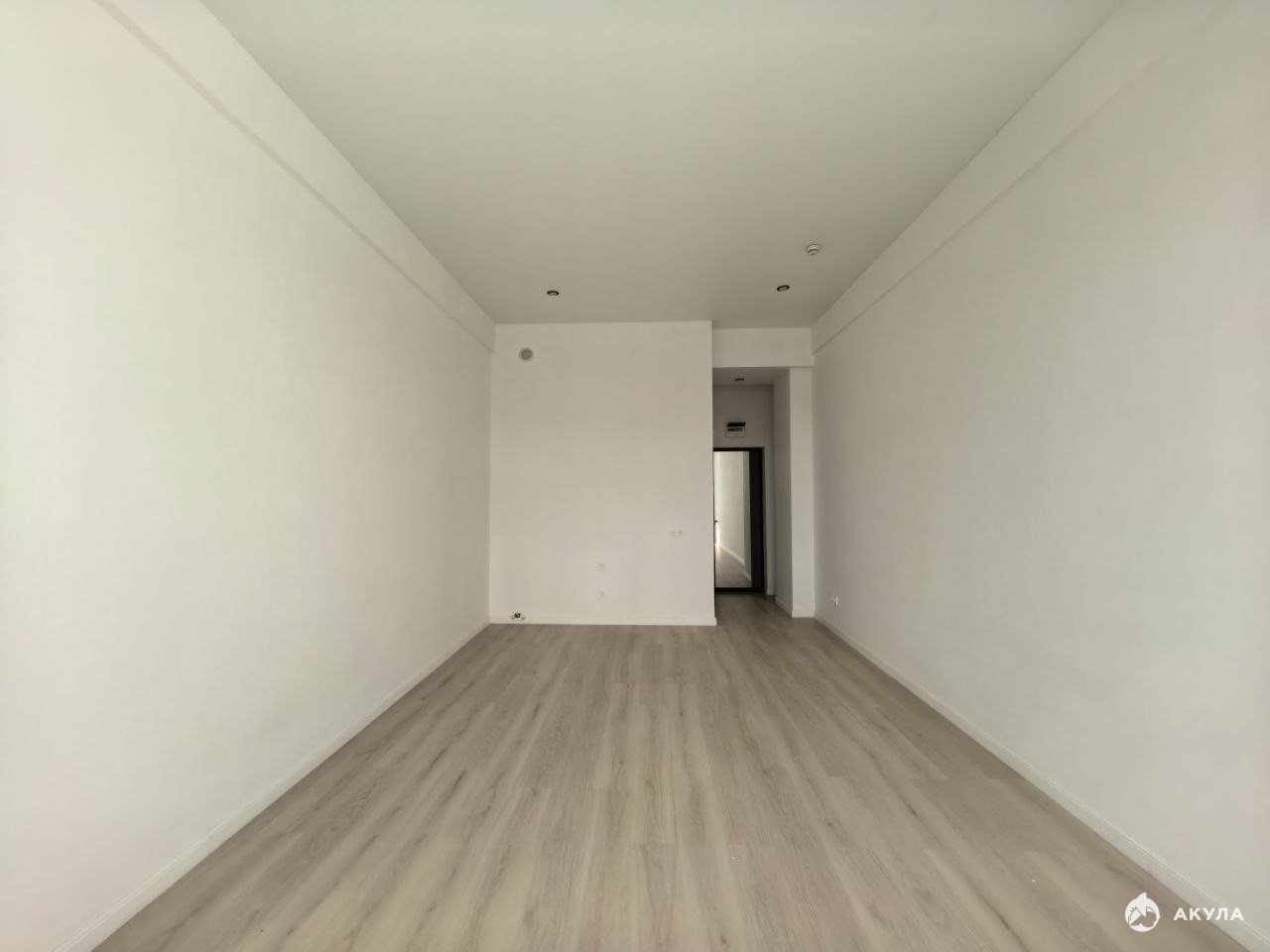 На стенах поклеены обои под покраску, на полу постелен ламинат с плинтусами и откосами. Есть вытяжная вентиляция в санузле и на кухне, выходы хв/гв, место под раковину на кухне. Кроме того, в помещениях уже есть выключатели освещения, розетки для бытовой техники и роутера, а также сделаны закладные для оптоволокна для интернета.