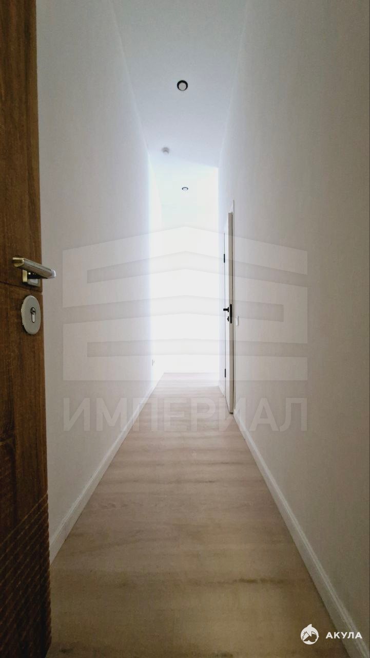 На стенах поклеены обои под покраску, на полу постелен ламинат с плинтусами и откосами. Есть вытяжная вентиляция в санузле и на кухне, выходы хв/гв, место под раковину на кухне. Кроме того, в помещениях уже есть выключатели освещения, розетки для бытовой техники и роутера, а также сделаны закладные для оптоволокна для интернета.