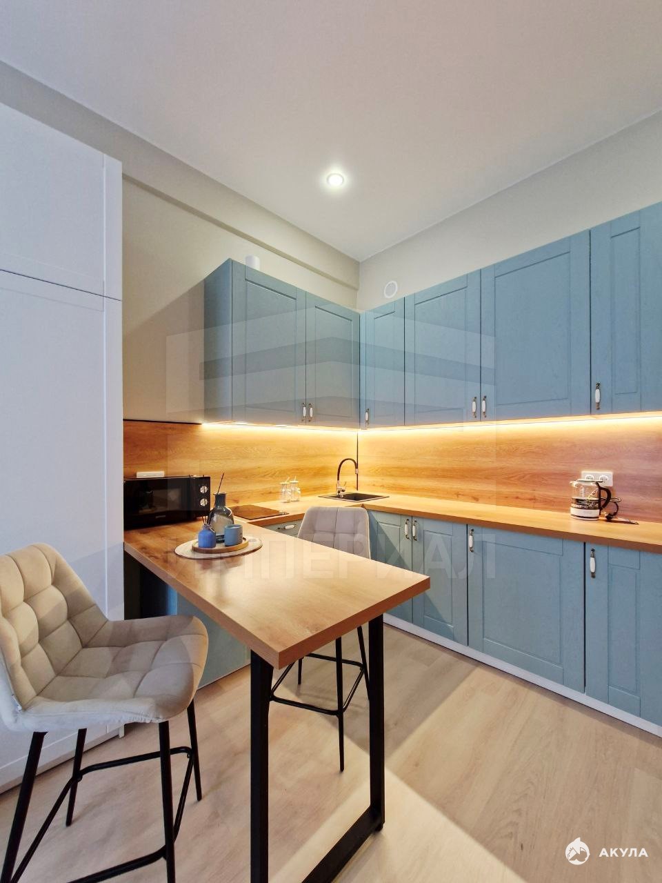 На стенах поклеены обои под покраску, на полу постелен ламинат с плинтусами и откосами. Есть вытяжная вентиляция в санузле и на кухне, выходы хв/гв, место под раковину на кухне. Кроме того, в помещениях уже есть выключатели освещения, розетки для бытовой техники и роутера, а также сделаны закладные для оптоволокна для интернета.