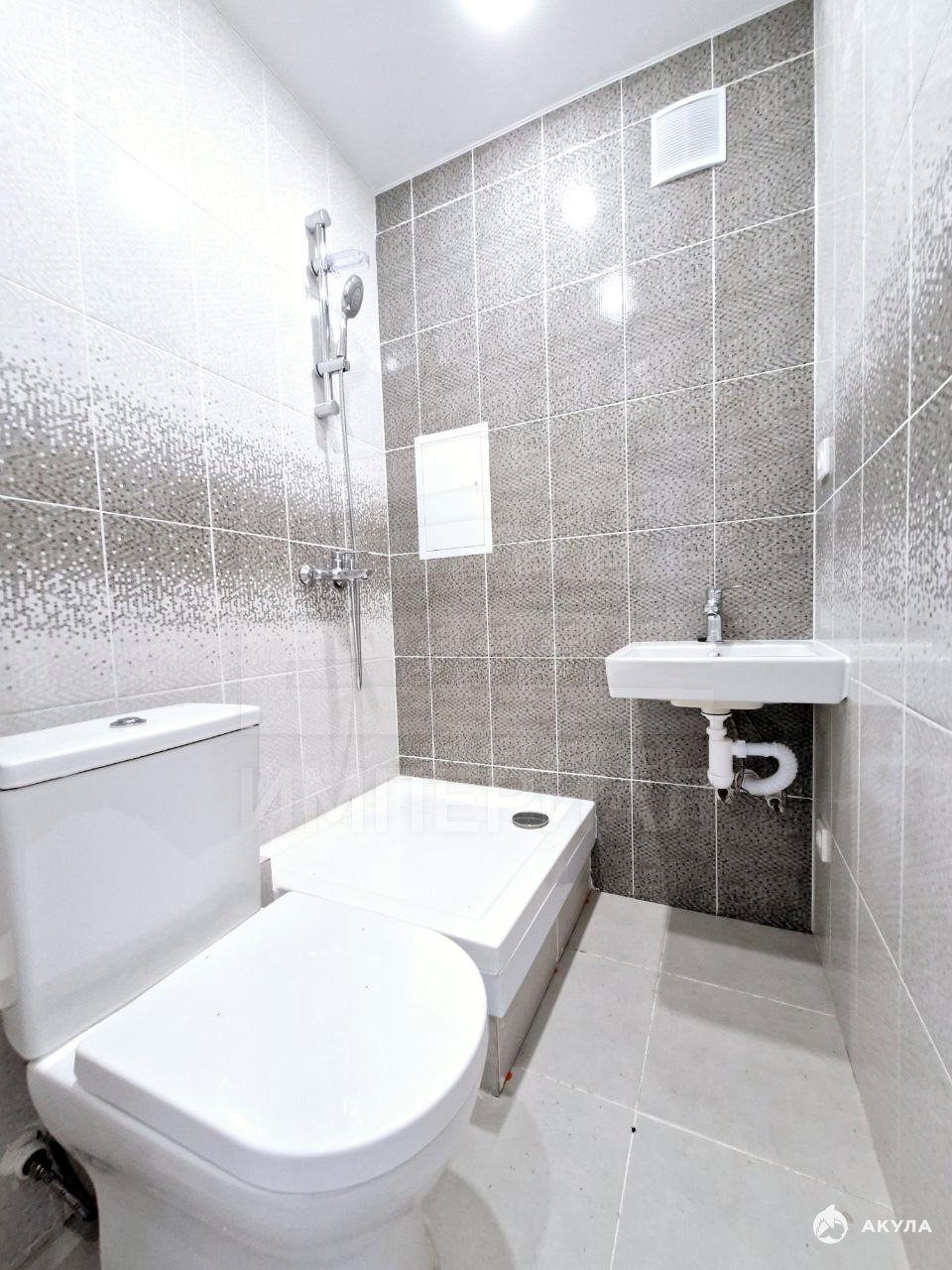 На стенах поклеены обои под покраску, на полу постелен ламинат с плинтусами и откосами. Есть вытяжная вентиляция в санузле и на кухне, выходы хв/гв, место под раковину на кухне. Кроме того, в помещениях уже есть выключатели освещения, розетки для бытовой техники и роутера, а также сделаны закладные для оптоволокна для интернета.