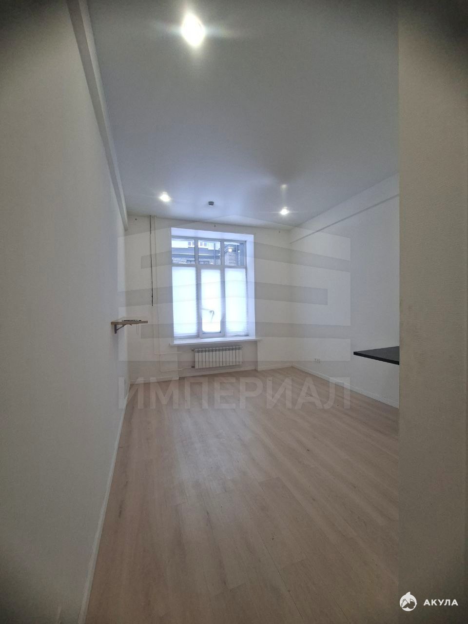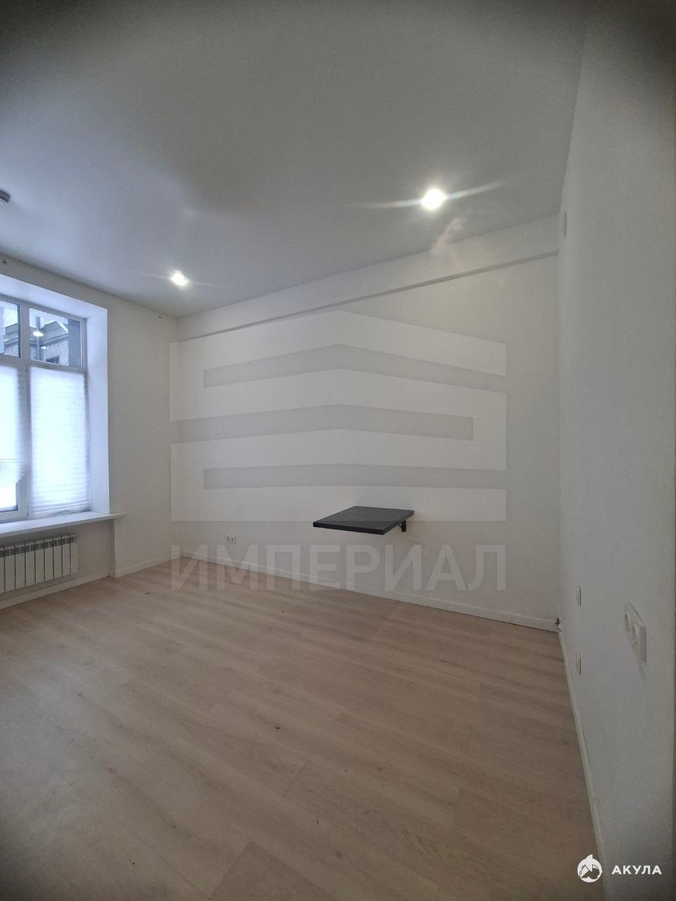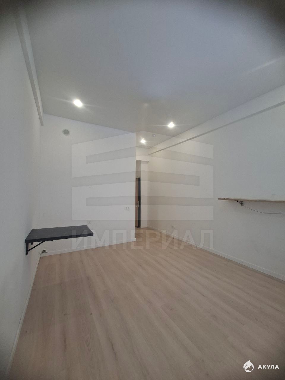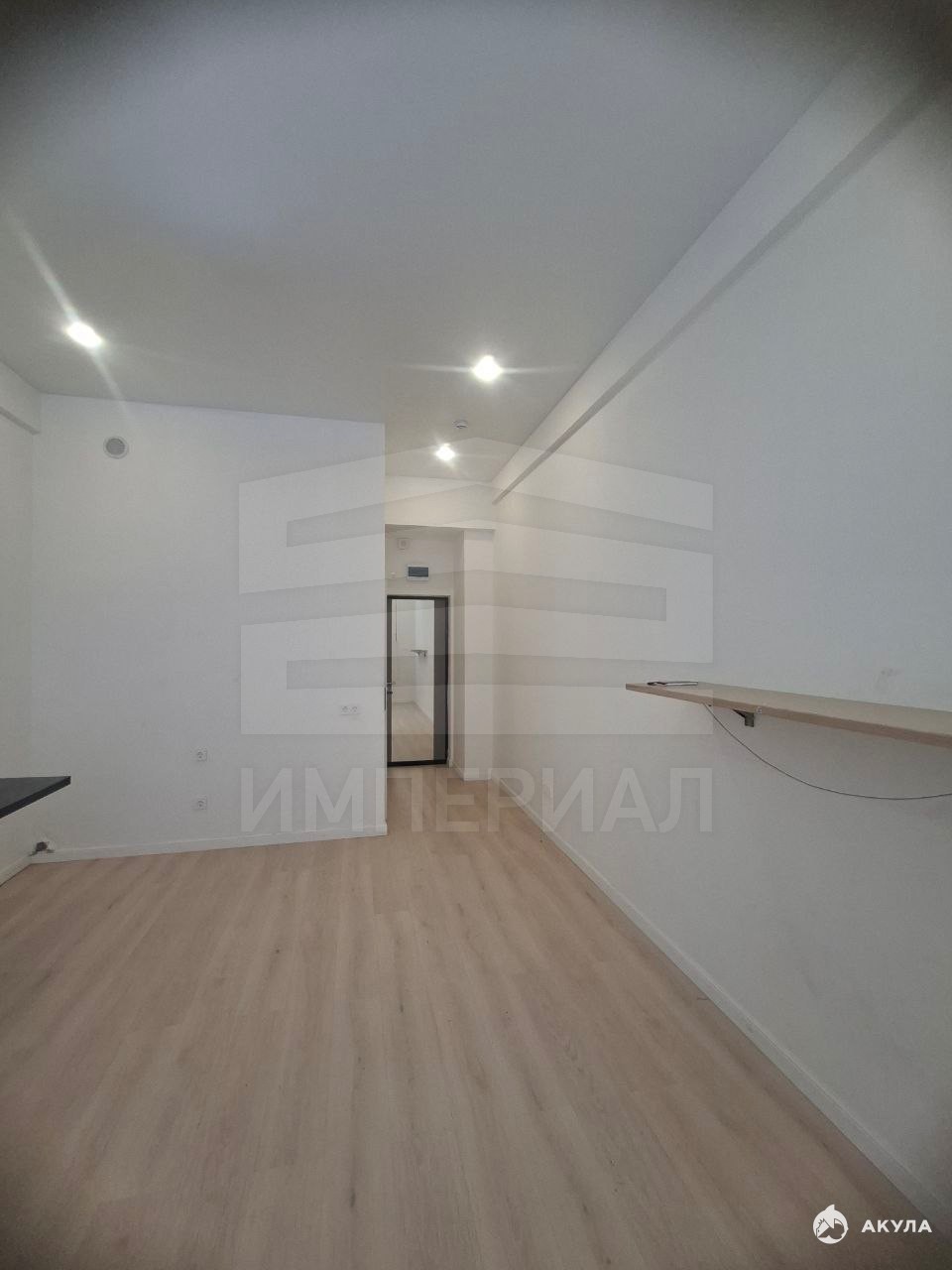 На стенах поклеены обои под покраску, на полу постелен ламинат с плинтусами и откосами. Есть вытяжная вентиляция в санузле и на кухне, выходы хв/гв, место под раковину на кухне. Кроме того, в помещениях уже есть выключатели освещения, розетки для бытовой техники и роутера, а также сделаны закладные для оптоволокна для интернета.