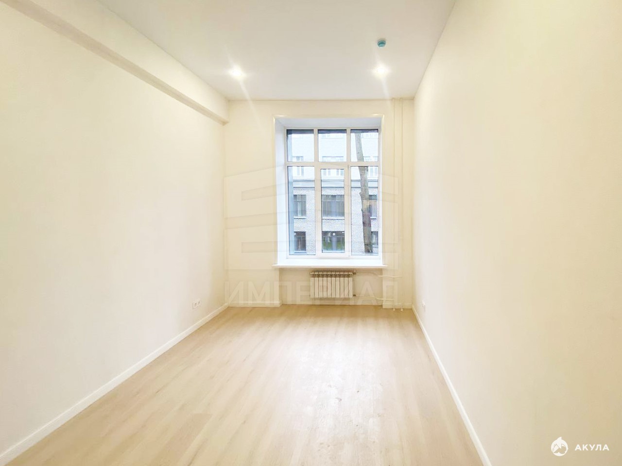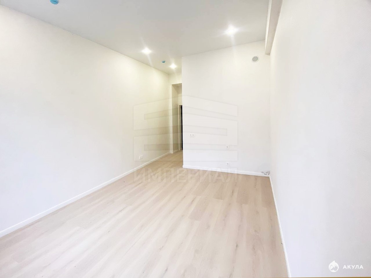 На стенах поклеены обои под покраску, на полу постелен ламинат с плинтусами и откосами. Есть вытяжная вентиляция в санузле и на кухне, выходы хв/гв, место под раковину на кухне. Кроме того, в помещениях уже есть выключатели освещения, розетки для бытовой техники и роутера, а также сделаны закладные для оптоволокна для интернета.