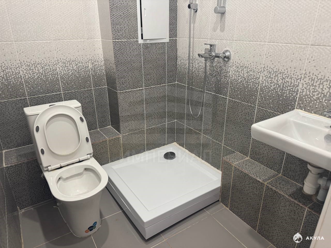 На стенах поклеены обои под покраску, на полу постелен ламинат с плинтусами и откосами. Есть вытяжная вентиляция в санузле и на кухне, выходы хв/гв, место под раковину на кухне. Кроме того, в помещениях уже есть выключатели освещения, розетки для бытовой техники и роутера, а также сделаны закладные для оптоволокна для интернета.