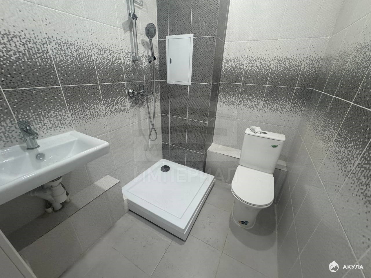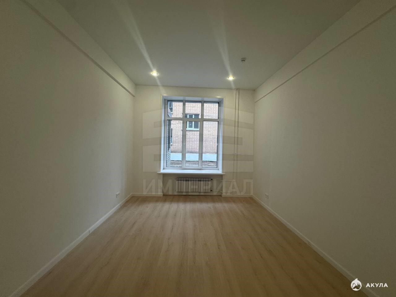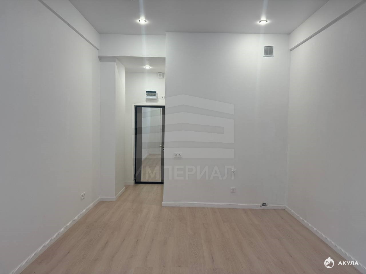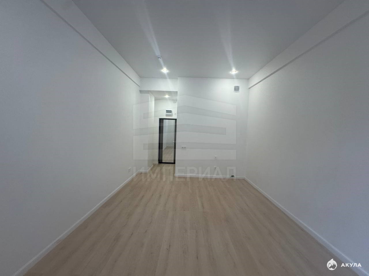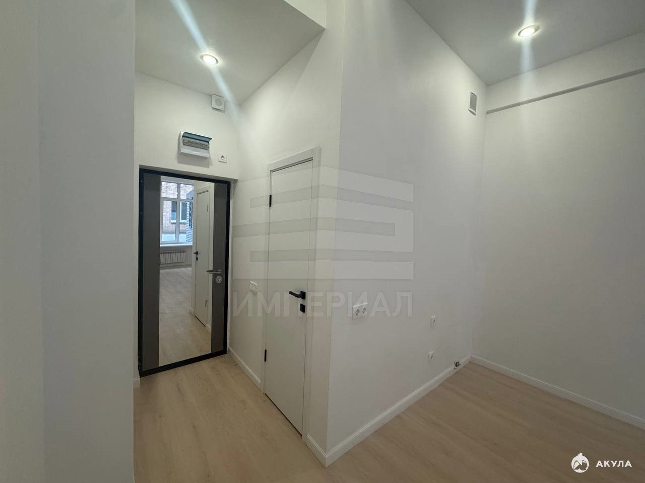 На стенах поклеены обои под покраску, на полу постелен ламинат с плинтусами и откосами. Есть вытяжная вентиляция в санузле и на кухне, выходы хв/гв, место под раковину на кухне. Кроме того, в помещениях уже есть выключатели освещения, розетки для бытовой техники и роутера, а также сделаны закладные для оптоволокна для интернета.