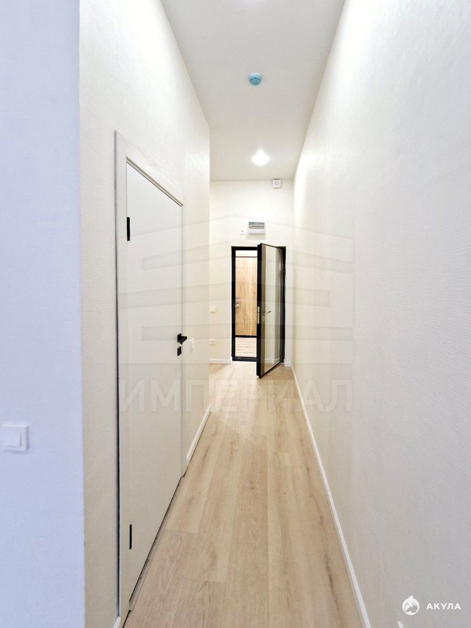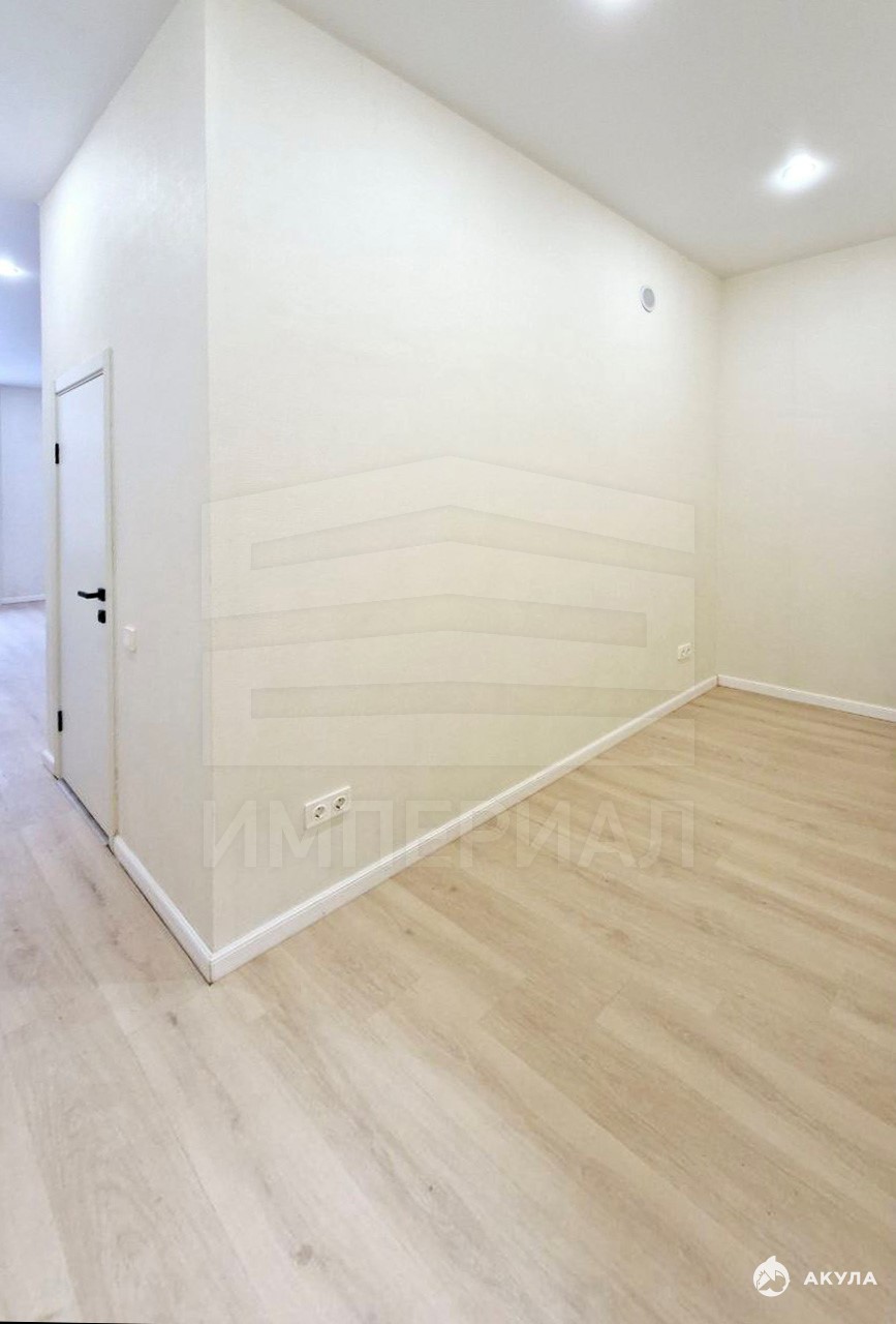 На стенах поклеены обои под покраску, на полу постелен ламинат с плинтусами и откосами. Есть вытяжная вентиляция в санузле и на кухне, выходы хв/гв, место под раковину на кухне. Кроме того, в помещениях уже есть выключатели освещения, розетки для бытовой техники и роутера, а также сделаны закладные для оптоволокна для интернета.