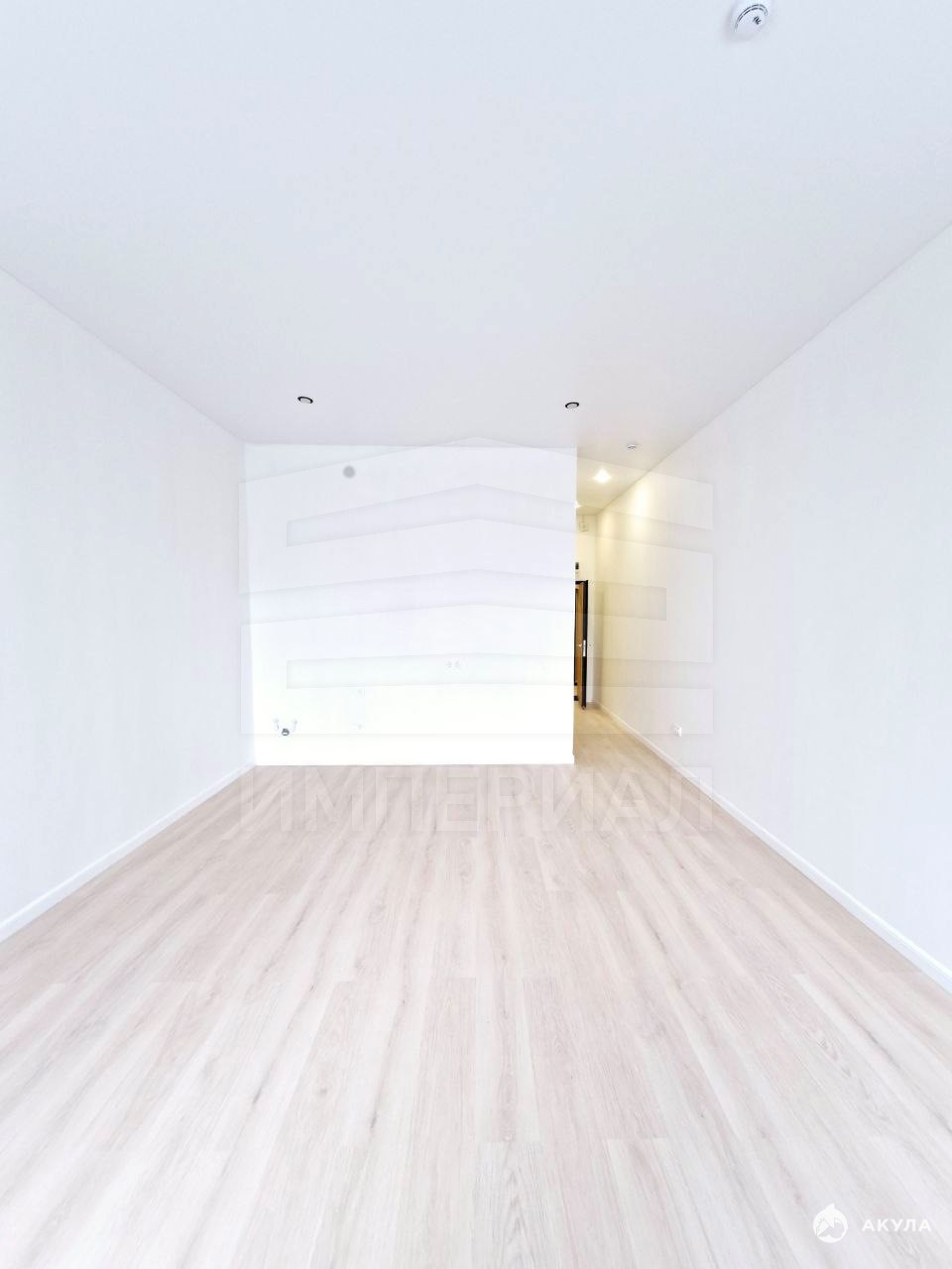 На стенах поклеены обои под покраску, на полу постелен ламинат с плинтусами и откосами. Есть вытяжная вентиляция в санузле и на кухне, выходы хв/гв, место под раковину на кухне. Кроме того, в помещениях уже есть выключатели освещения, розетки для бытовой техники и роутера, а также сделаны закладные для оптоволокна для интернета.