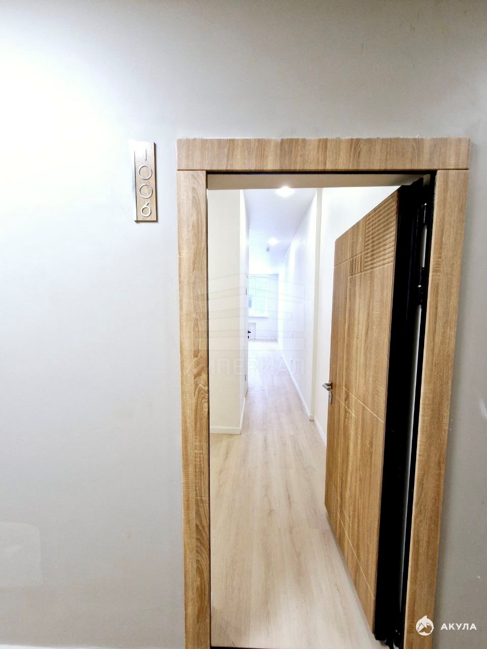 На стенах поклеены обои под покраску, на полу постелен ламинат с плинтусами и откосами. Есть вытяжная вентиляция в санузле и на кухне, выходы хв/гв, место под раковину на кухне. Кроме того, в помещениях уже есть выключатели освещения, розетки для бытовой техники и роутера, а также сделаны закладные для оптоволокна для интернета.