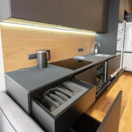 Арт. 59280041 Сдается квартира 9/17 этажного дома, одна комната изолированная, вторая объединена с кухней. Новый кухонный гарнитур под единой столешницей, оборудован доводчиками и посудой, обеденный стол, диван, Будет шкаф для одежды и прихожая, остальная мебель и техника...